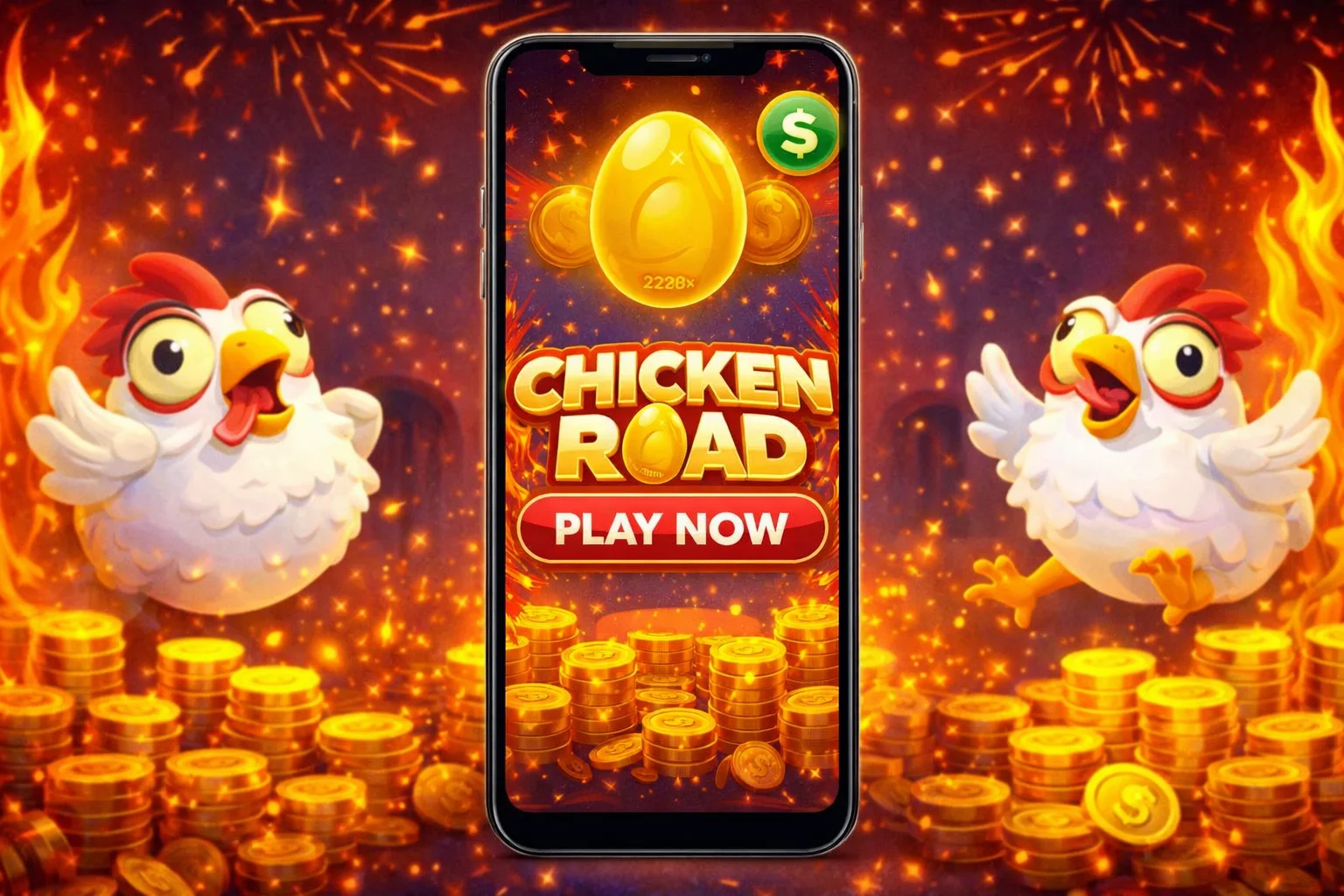 Ένα κοτόπουλο διασχίζει σκηνές σε ένα dungeon με παγίδες φλόγας. Κάθε επιτυχημένη σκηνή αυξάνει τον πολλαπλασιαστή. Αν εμφανιστεί φλόγα, ο γύρος τελειώνει αμέσως και το στοίχημα χάνεται. Ο παίκτης αποφασίζει σε κάθε σκηνή αν θα κάνει cash out ή θα συνεχίσει — χωρίς χρονική πίεση, κάτι που διαφοροποιεί τον τίτλο από ανταγωνιστές όπου ο πολλαπλασιαστής αυξάνεται σε πραγματικό χρόνο.